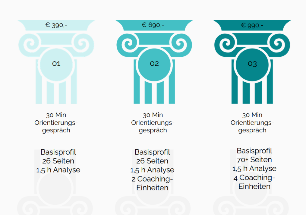 Die Messung deiner inneren unbewussten Wahrnehmung bietet einen klaren Rahmen für wirklich notwendige Entwicklungs­arbeiten bezüglich Selbstbewusstsein, Rollen­verständnis oder Selbstführung. Das Profil visualisiert sehr detailliert, in welchen Bereichen du profitieren kannst und aufgrund der Ergebnisse können wir gezielt Stärken und Lernfelder herausarbeiten und auf ein Ziel hinarbeiten. Weiters ermitteln wir die sogenannten „blinden Flecken“ und deine intuitiven Stärken, deine Talente.